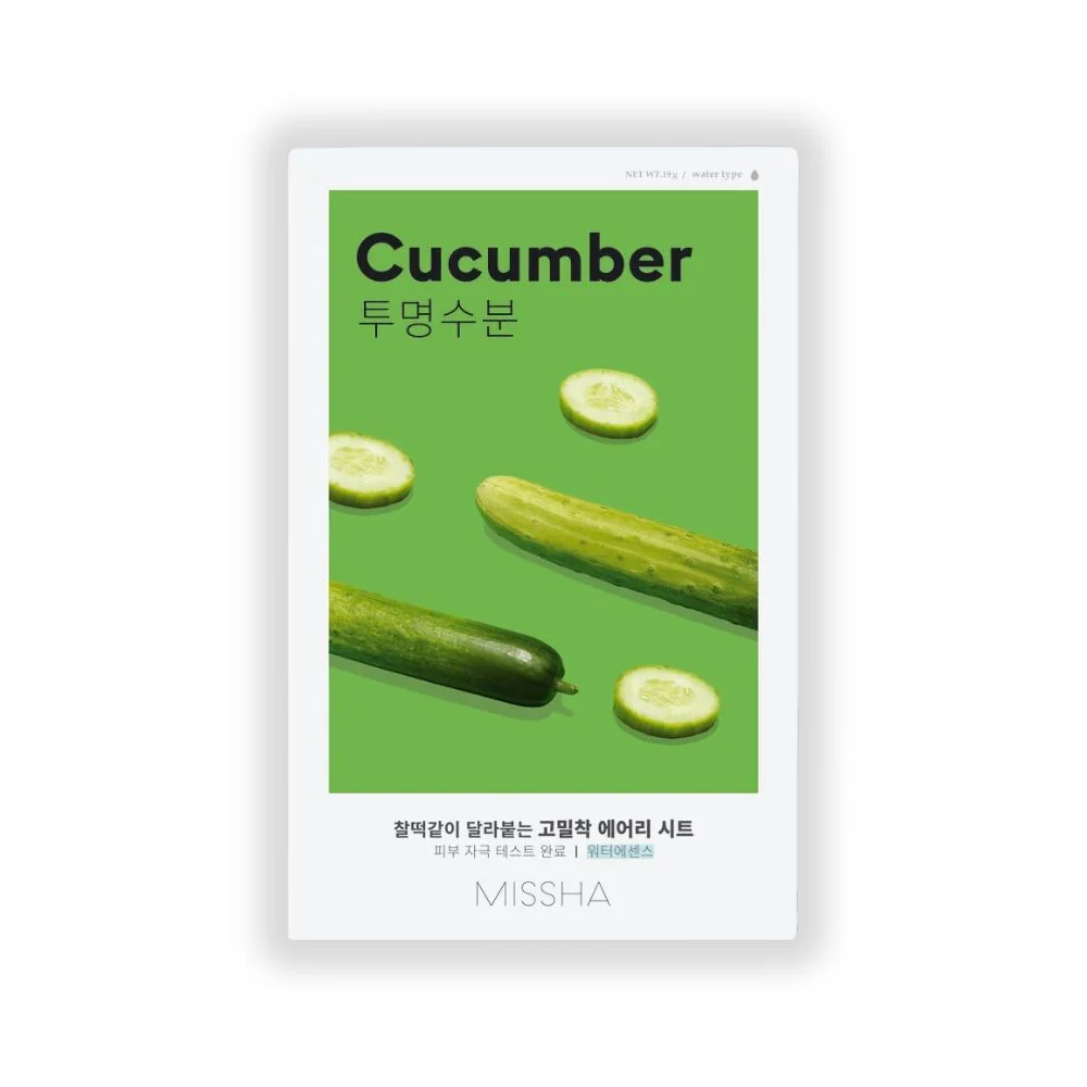 Δύο φορές πιο λεπτή και ελαφριά από άλλες sheet μάσκες, η Airy Fit Cucumber Sheet Mask απλώνεται άνετα και προσκολλάται στο δέρμα. Η τεχνική Fresh up cold brew χρησιμοποιείται για την εξαγωγή και παράδοση του συστατικού όσο το δυνατόν πιο φρέσκο.